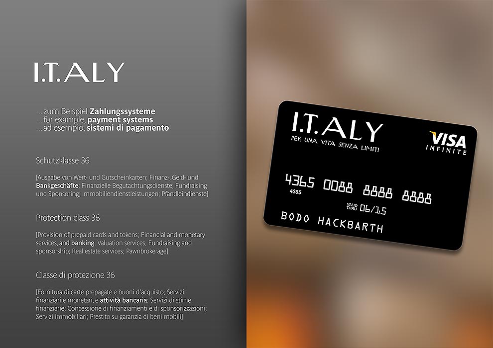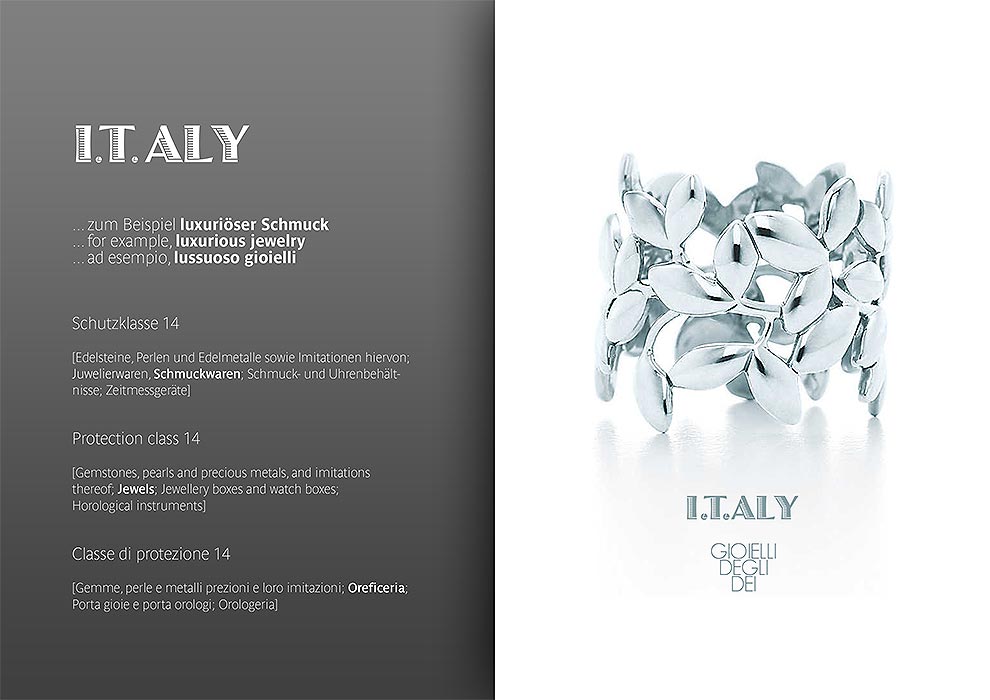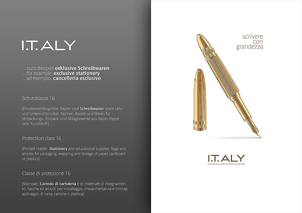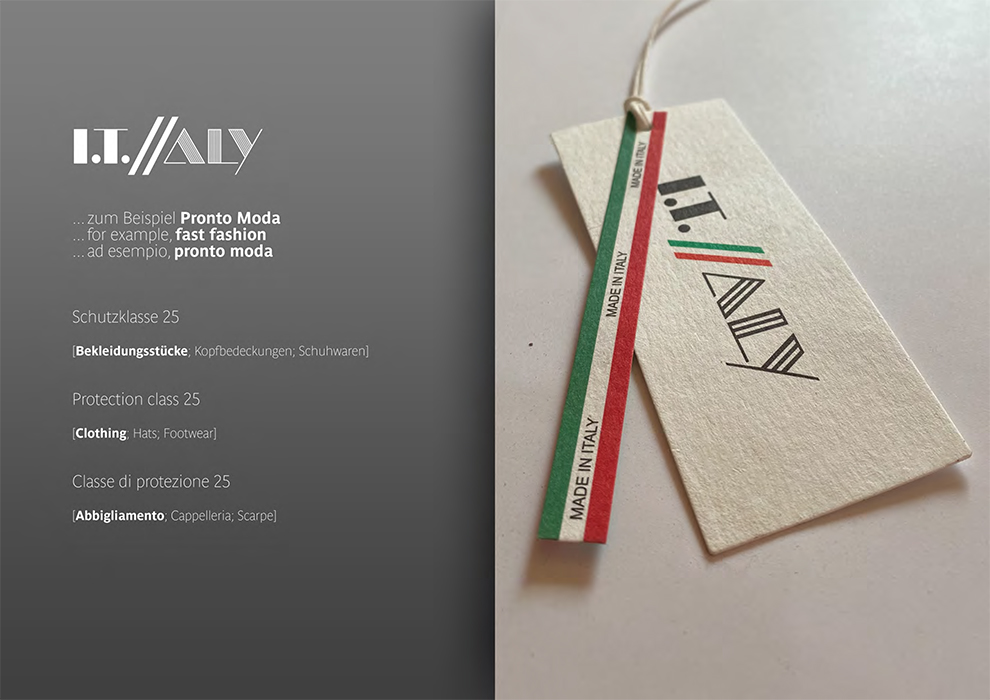 Il marchio europeo i.t.aly sta con undici gradi di protezione e sette domini Internet internazionale per la vendita.